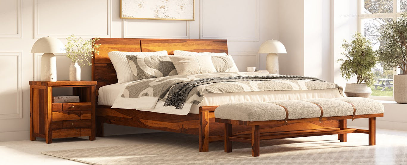 I bought this teak wood bed for my new home and I just love it! I paid extra for priority shipping and it showed up right on time. The only little thing was that it came packed in a big wooden crate, but I talked to Sarah in customer support and she was so helpful. She found me local help to get it moved in, which made things so much easier.