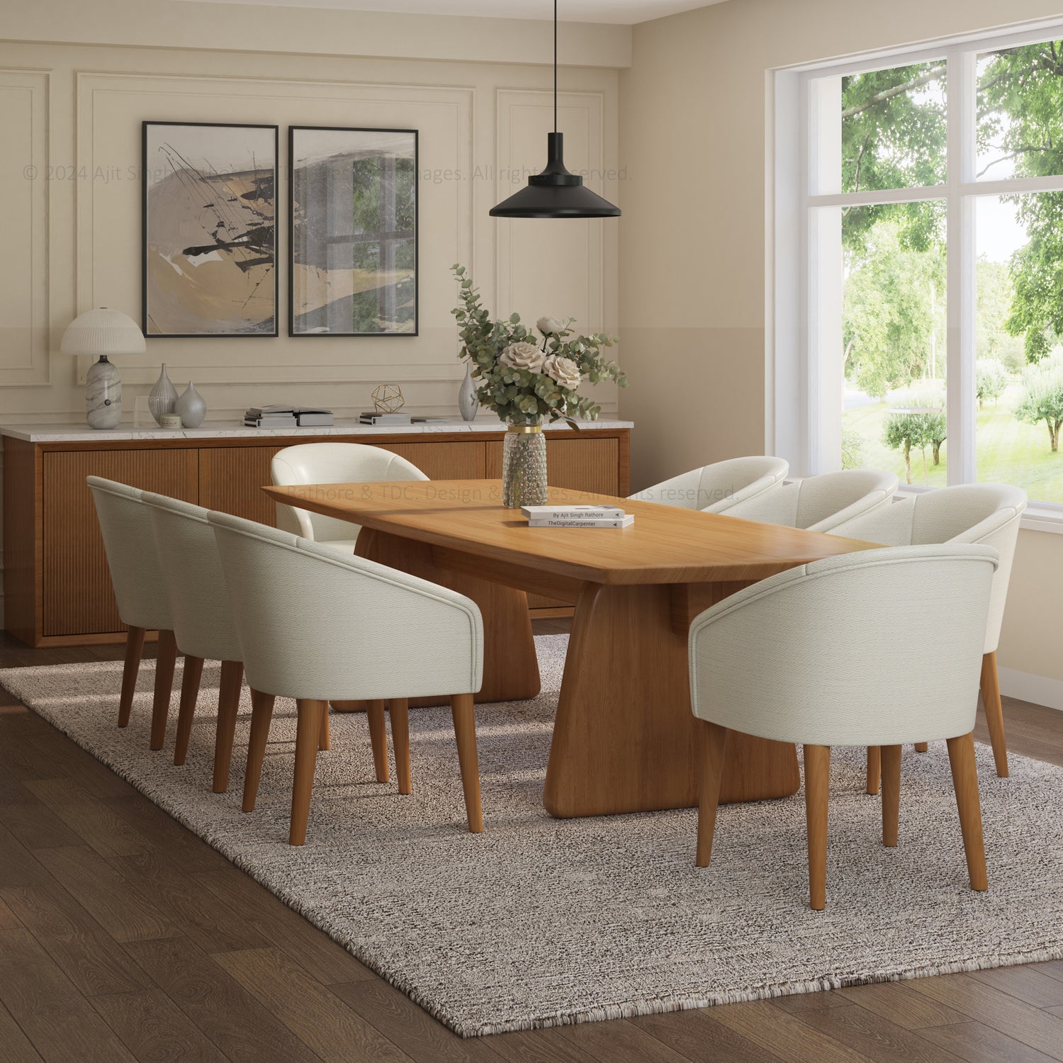 The Irvine Teak Wood Dining Table exemplifies these qualities. With a smooth finish and a classic silhouette, it combines durability with understated elegance. This table is perfect for both daily meals and formal occasions, standing as a testament to the beauty and longevity of solid wood furniture.