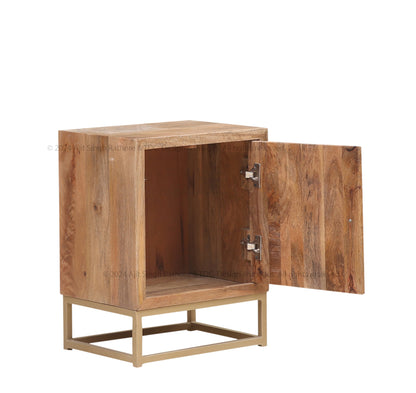 The Plainfield Honeycomb Industrial Solid Wood End Table is a compact yet striking piece that brings a perfect blend of rustic charm and contemporary design to your living space. Crafted from premium 100% Premium Solid Wood, it features a unique honeycomb-patterned door that adds depth and texture to its design. Its brass legs and knob enhance the table's industrial appeal, creating a refined and durable accent piece.