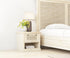 The Costa Mesa Night Stand is crafted with precision and elegance, designed to blend seamlessly with any décor. Made from 100% solid wood, this nightstand features a louvered front drawer with two black metal knobs, adding a touch of modern farmhouse charm. The wide open shelf beneath offers additional storage space for books, décor, or bedside essentials. Its minimalist design and light, distressed finish make it a versatile piece that can complement various bedroom styles.