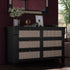 Elevate your bedroom with the Hayward Handcrafted Cane Dresser, a perfect blend of modern elegance and natural charm. Crafted from solid wood, this six-drawer storage chest features intricately handwoven rattan cane drawer fronts, creating a stunning contrast against its sleek matte black finish. Designed for both functionality and aesthetic appeal, this dresser brings a bohemian, farmhouse, and mid-century modern touch to any space.