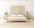 Elegant Carvings: The headboard showcases exquisite carvings that draw inspiration from Moroccan motifs, adding an element of exotic charm without overpowering the room’s decor. The carving is strategically placed to ensure visibility even when the bed is dressed with a thick mattress.