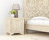 Complement your bedroom ensemble with the Malibu End Table Nightstand, meticulously crafted to echo the Moroccan-inspired elegance of the Malibu Platform Bed. This nightstand combines functionality with aesthetic charm, featuring a solid wood construction with an off-white stain that enhances its carved details.