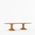 Anchoring the table are two bold pedestal legs, masterfully shaped with soft curves and a tiered base. These sculptural bases not only add visual depth and architectural elegance but also provide exceptional stability and unobstructed legroom for everyone at the table.