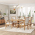 Paired with the Miami Dining Armchairs, the set achieves both elegance and comfort. Each chair features a solid wood frame with gracefully sculpted arms, a high back for support, and plush upholstered seating that encourages long, lingering meals. The light, textured fabric contrasts beautifully with the warmth of the wood, creating a look that is at once contemporary and classic.