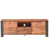 The Montclair Solid Wood Industrial Charm TV Stand combines rugged industrial aesthetics with the timeless elegance of 100% Solid Wood craftsmanship. Designed to elevate your entertainment space, this TV stand showcases natural wood grain patterns and side panels finished in a stainless steel-inspired look, adding a bold and contemporary industrial edge.