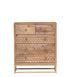 The Plainfield Honeycomb Industrial Solid Wood Tall Dresser exudes a perfect blend of rustic and contemporary aesthetics. Its honeycomb-patterned drawers provide an artistic edge, while the natural wood tones and brass accents highlight its raw elegance. The tall, streamlined design ensures it fits seamlessly into a variety of interiors, from modern-industrial to rustic-chic.