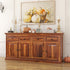 This sideboard features four pull-out drawers and four cabinet compartments with adjustable shelves, providing ample space to store tableware, linens, and other essentials while maintaining a clean and organized appearance. The smooth surface is ideal for displaying decorative pieces or serving dishes during gatherings.